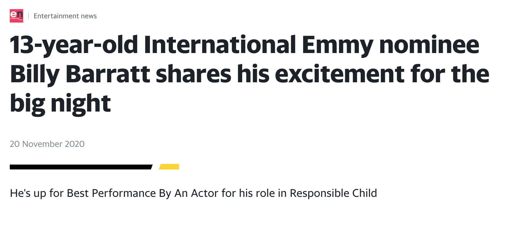 We are thrilled to be the official press team representing Emmy Award-winning young actor Billy Barratt. Billy had an incredible 2020 starring in BBC drama Responsible child which led to him receiving a best actor Emmy award for his role. He is currently filming a brand new series for Apple Tv and has a bright future ahead of him.